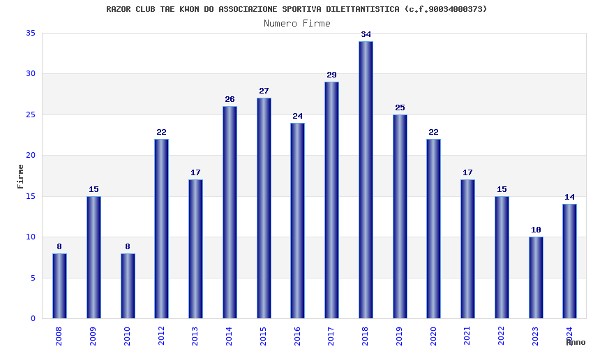 | 2018 | 34 | 922,64 | 27,14 | 36.283 | 3.230 | 769 | 16 |