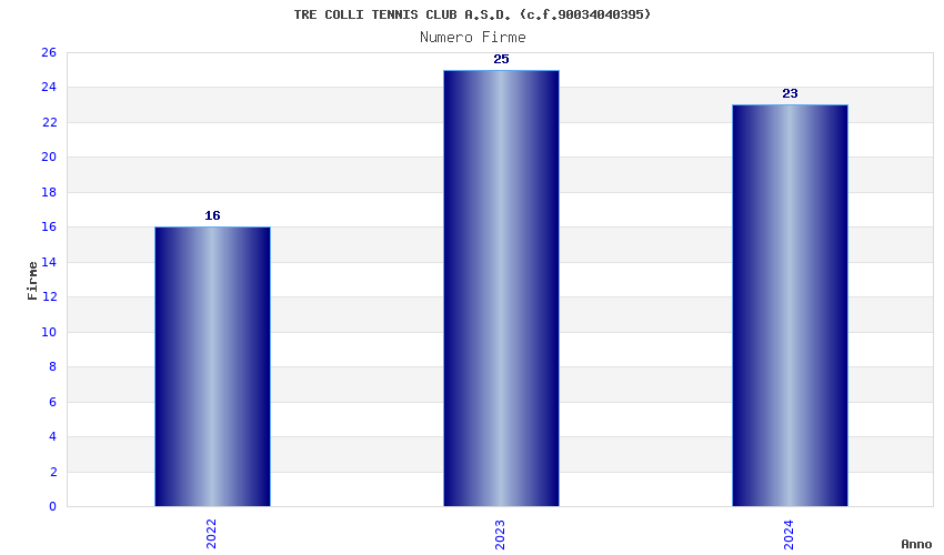 | Anno | Firme | Importi | Media | Naz. | Reg. | Prov. | Comu. |
