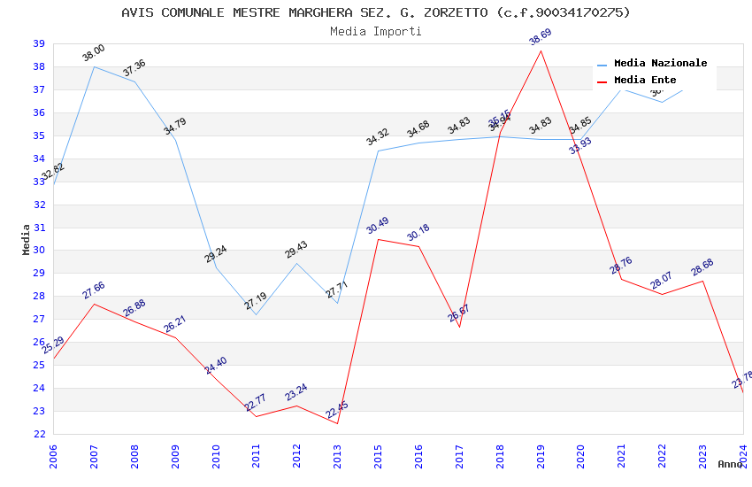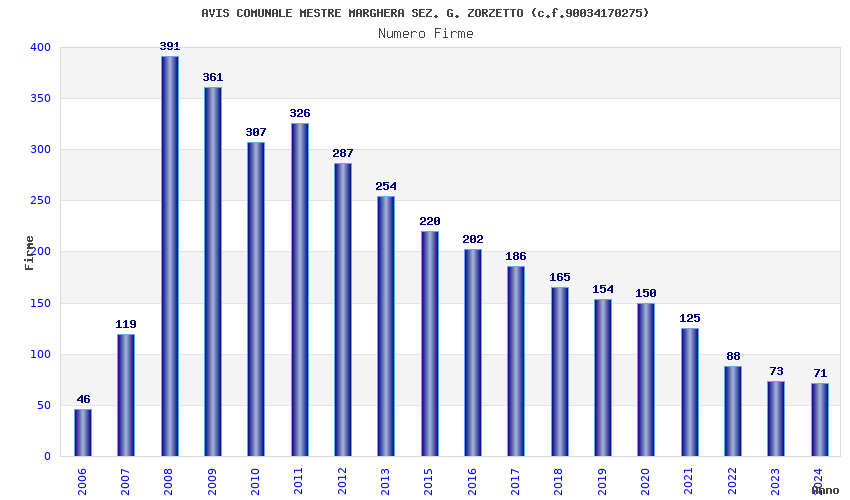| Anno | Firme | Importi | Media | Naz. | Reg. | Prov. | Comu. |