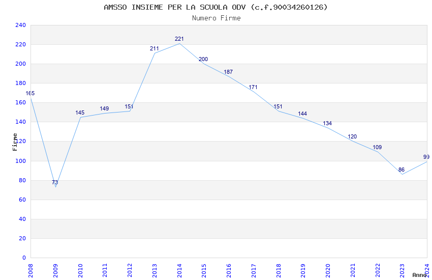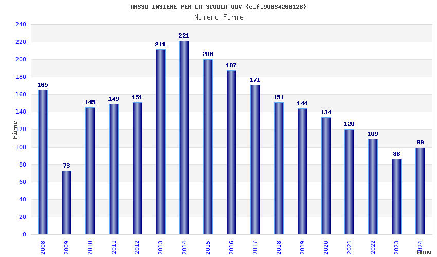 | Anno | Firme | Importi | Media | Naz. | Reg. | Prov. | Comu. |
