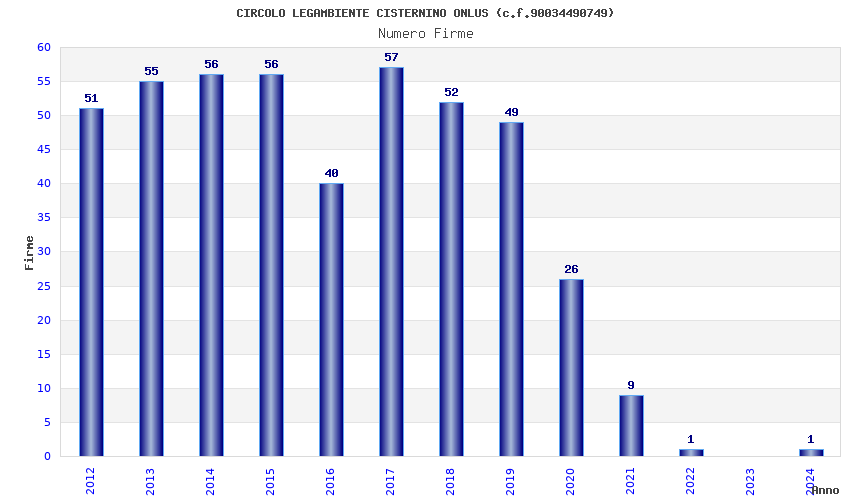| Anno | Firme | Importi | Media | Naz. | Reg. | Prov. | Comu. |