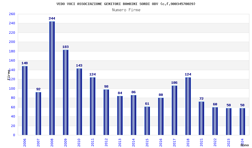 | Anno | Firme | Importi | Media | Naz. | Reg. | Prov. | Comu. |