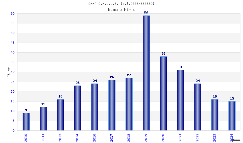 | Anno | Firme | Importi | Media | Naz. | Reg. | Prov. | Comu. |