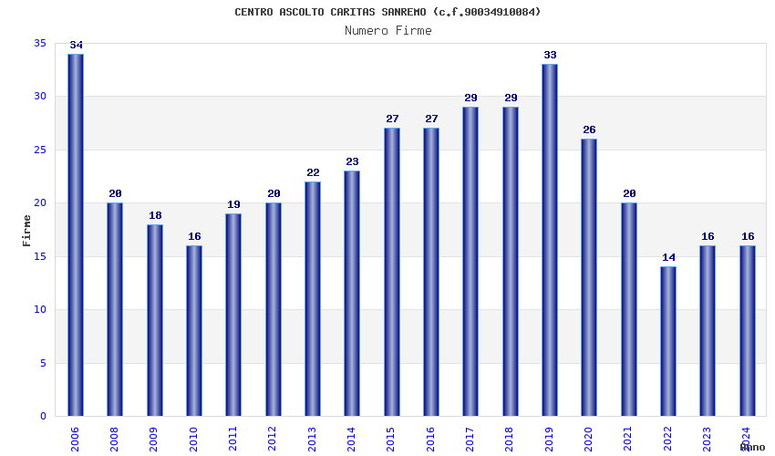 | Anno | Firme | Importi | Media | Naz. | Reg. | Prov. | Comu. |