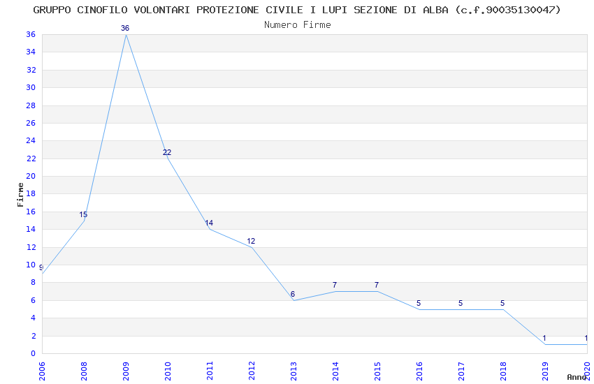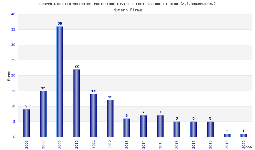 | Anno | Firme | Importi | Media | Naz. | Reg. | Prov. | Comu. |