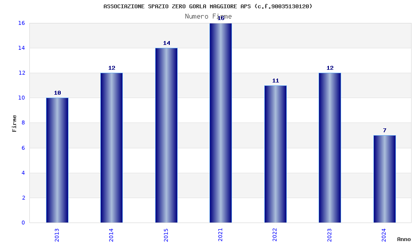 | Anno | Firme | Importi | Media | Naz. | Reg. | Prov. | Comu. |