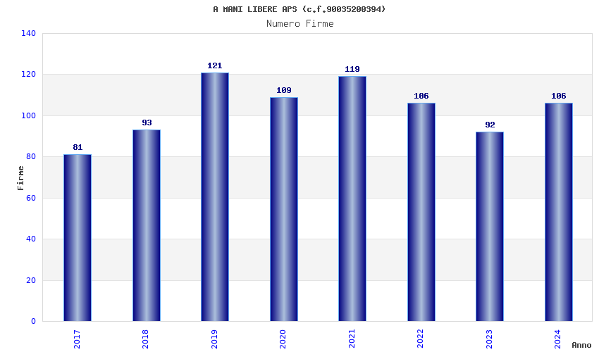 | 2021 | 119 | 3.674,09 | 30,87 | 14.691 | 1.276 | 89 | 20 |