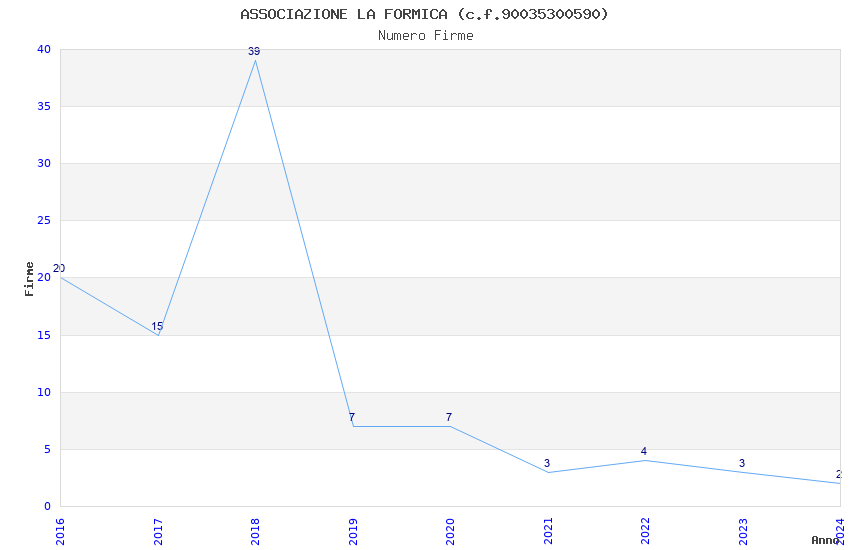 | 2018 | 39 | 704,44 | 18,06 | 40.384 | 3.527 | 229 | 13 |
