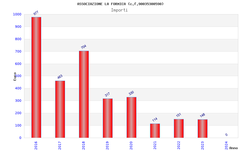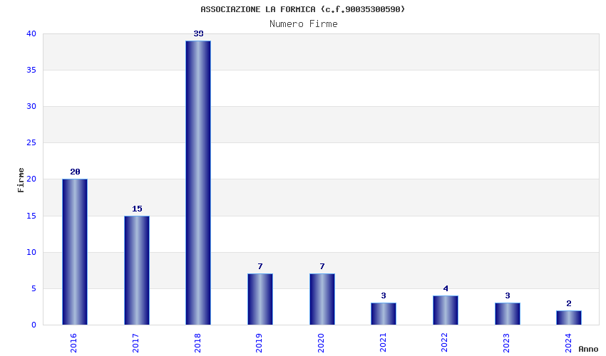 | Anno | Firme | Importi | Media | Naz. | Reg. | Prov. | Comu. |