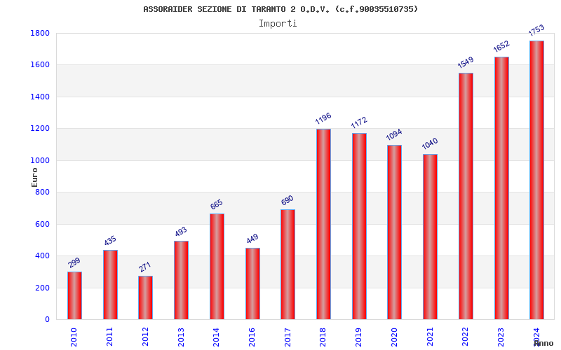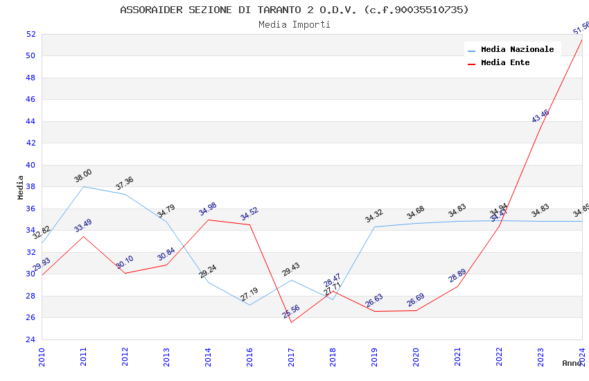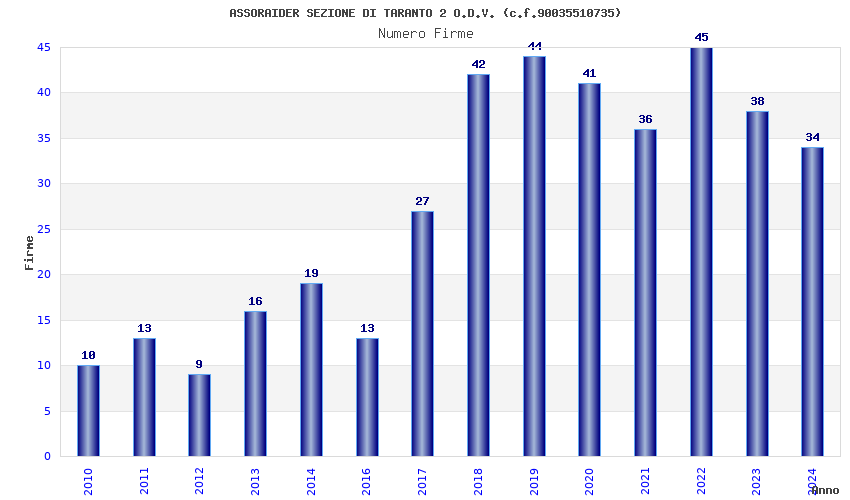 | Anno | Firme | Importi | Media | Naz. | Reg. | Prov. | Comu. |