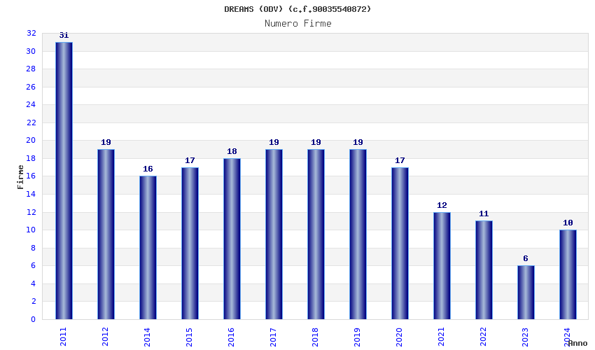 | Anno | Firme | Importi | Media | Naz. | Reg. | Prov. | Comu. |