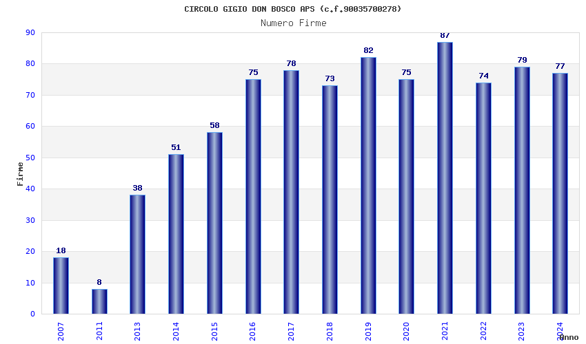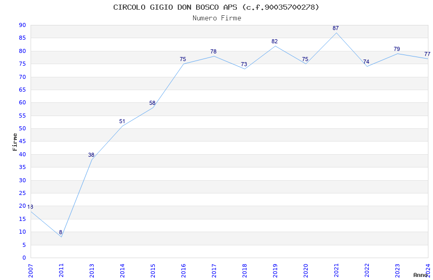 | 2021 | 87 | 1.752,64 | 20,15 | 26.226 | 2.426 | 351 | 5 |