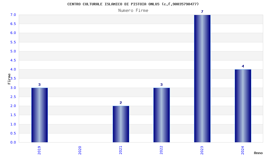| Anno | Firme | Importi | Media | Naz. | Reg. | Prov. | Comu. |