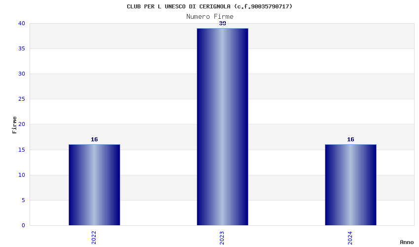 | Anno | Firme | Importi | Media | Naz. | Reg. | Prov. | Comu. |