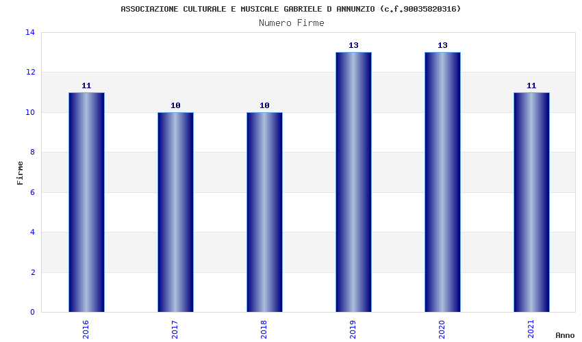 | Anno | Firme | Importi | Media | Naz. | Reg. | Prov. | Comu. |