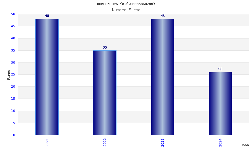 | Anno | Firme | Importi | Media | Naz. | Reg. | Prov. | Comu. |