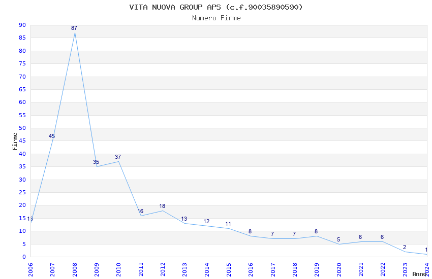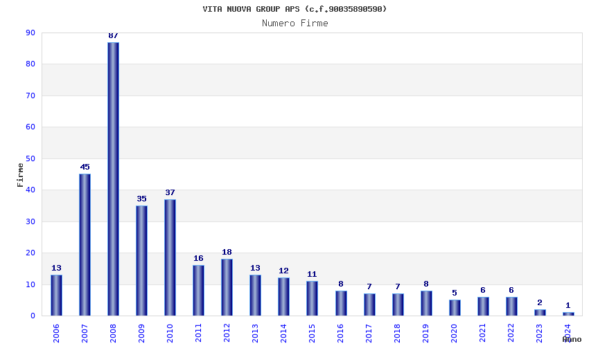 | Anno | Firme | Importi | Media | Naz. | Reg. | Prov. | Comu. |