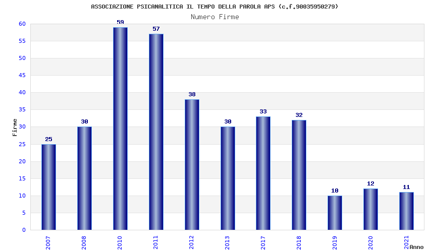 | Anno | Firme | Importi | Media | Naz. | Reg. | Prov. | Comu. |