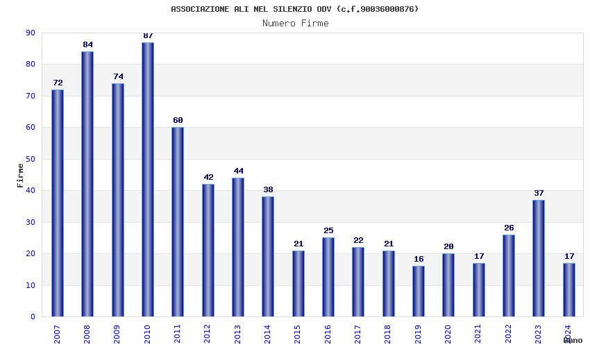 | Anno | Firme | Importi | Media | Naz. | Reg. | Prov. | Comu. |