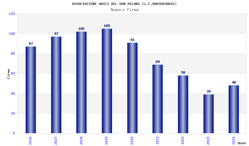 | Anno | Firme | Importi | Media | Naz. | Reg. | Prov. | Comu. |