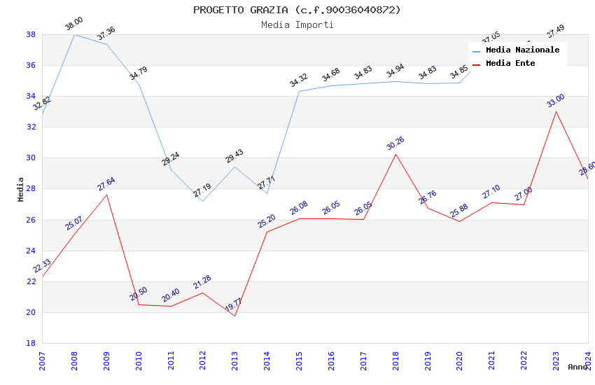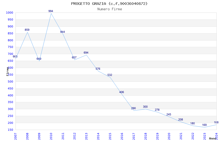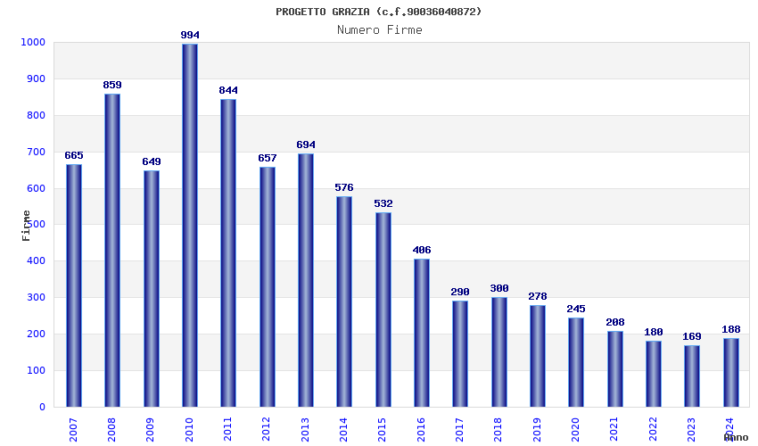 | Anno | Firme | Importi | Media | Naz. | Reg. | Prov. | Comu. |
