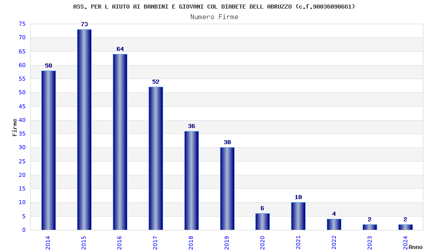 | Anno | Firme | Importi | Media | Naz. | Reg. | Prov. | Comu. |