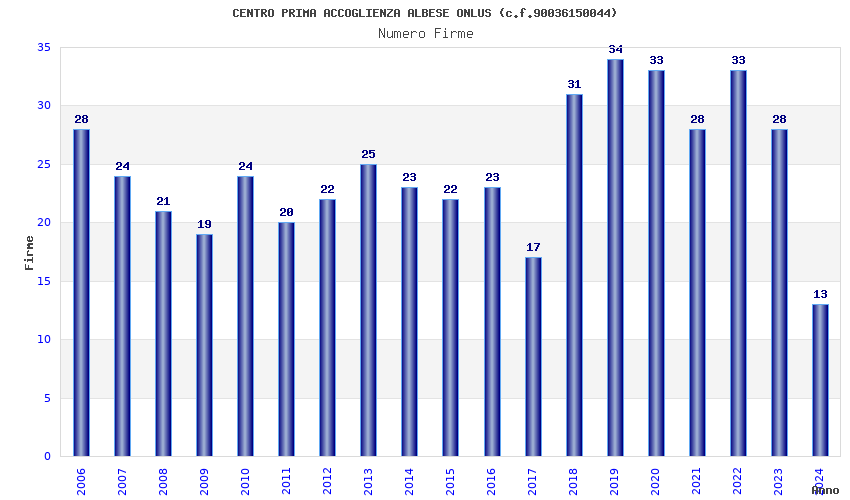| Anno | Firme | Importi | Media | Naz. | Reg. | Prov. | Comu. |