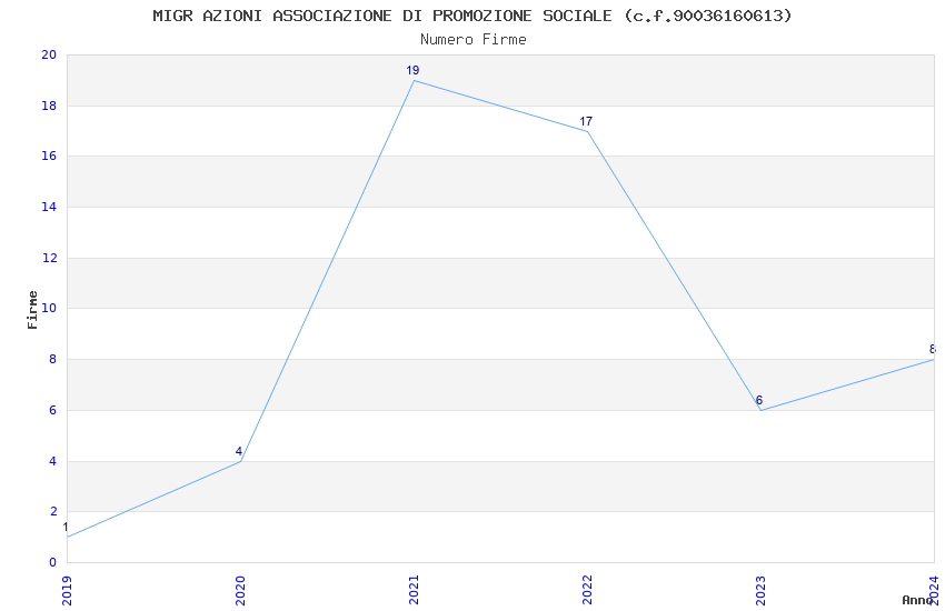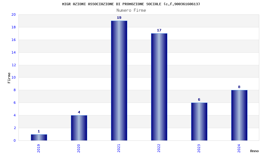 | Anno | Firme | Importi | Media | Naz. | Reg. | Prov. | Comu. |