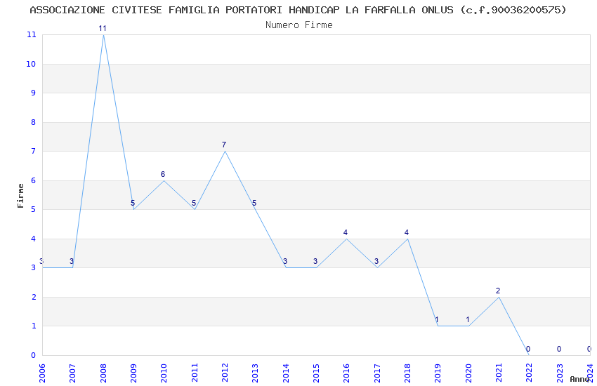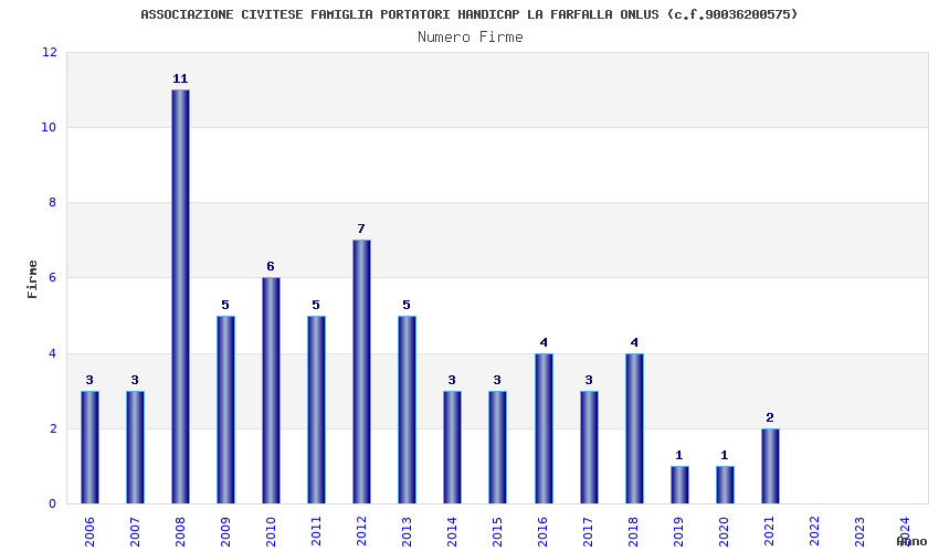 | Anno | Firme | Importi | Media | Naz. | Reg. | Prov. | Comu. |