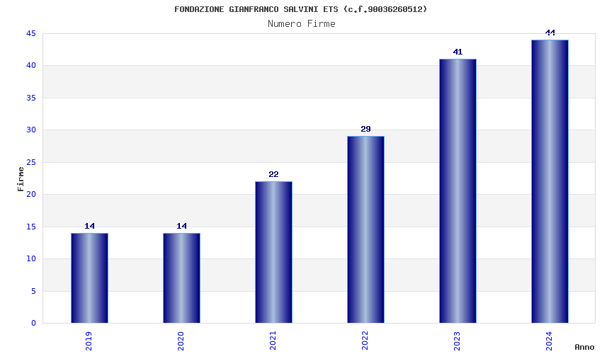 | Anno | Firme | Importi | Media | Naz. | Reg. | Prov. | Comu. |