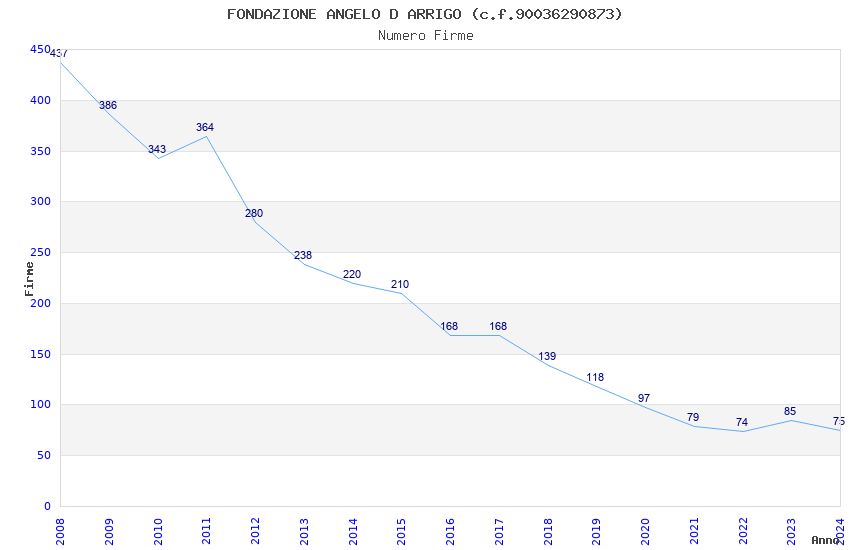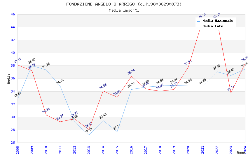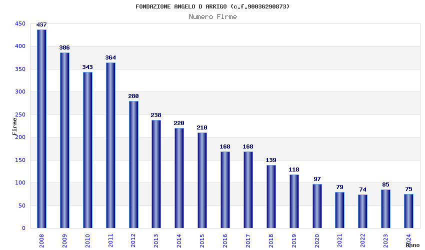 | Anno | Firme | Importi | Media | Naz. | Reg. | Prov. | Comu. |