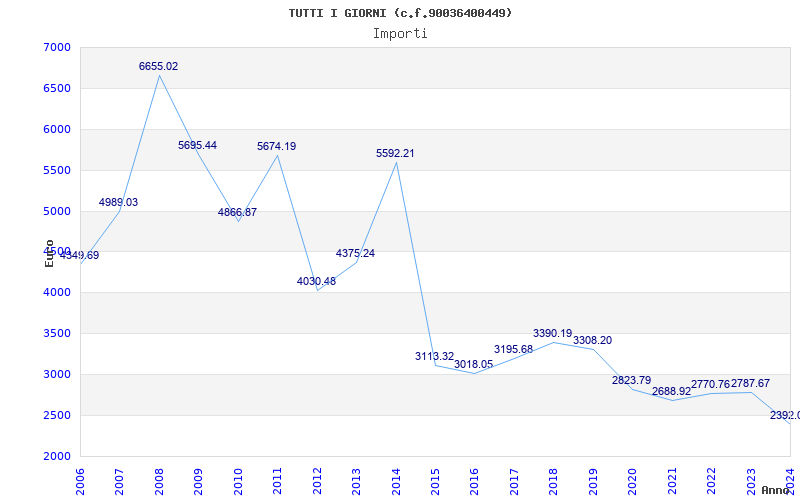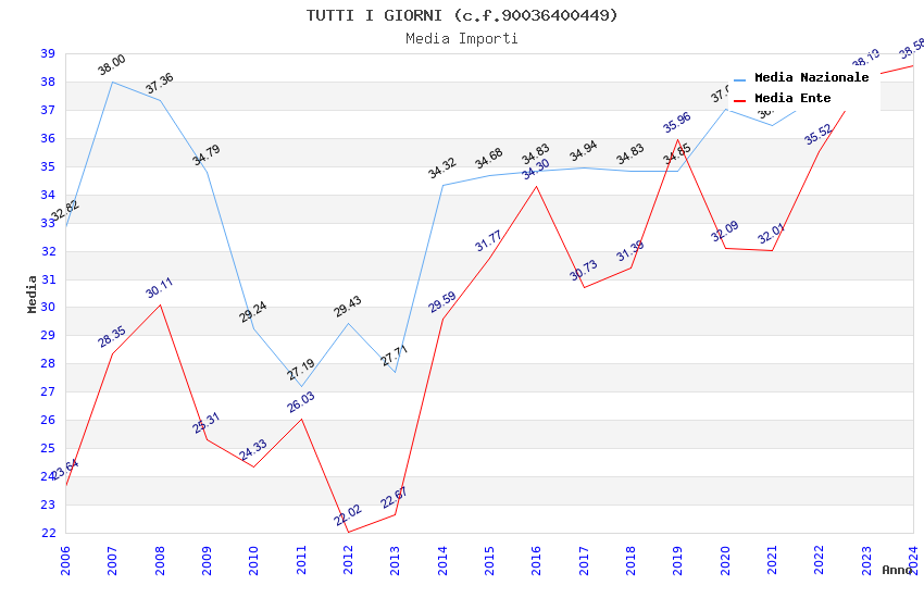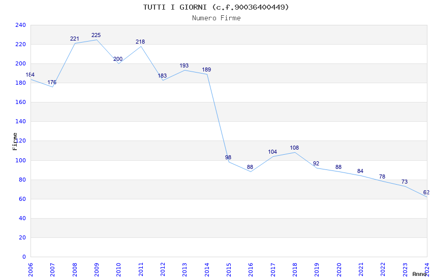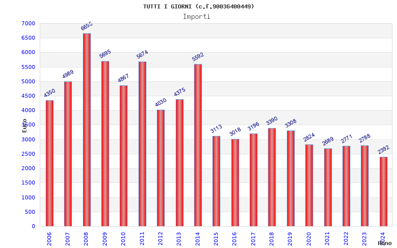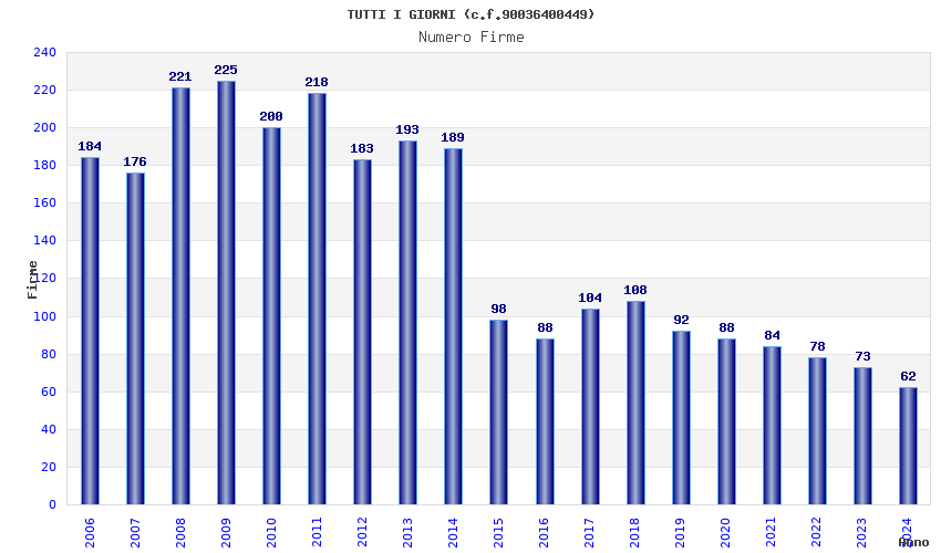 | Anno | Firme | Importi | Media | Naz. | Reg. | Prov. | Comu. |