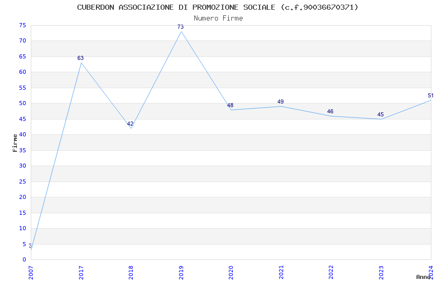 | 2019 | 73 | 1.999,12 | 27,39 | 23.997 | 2.111 | 523 | 40 |