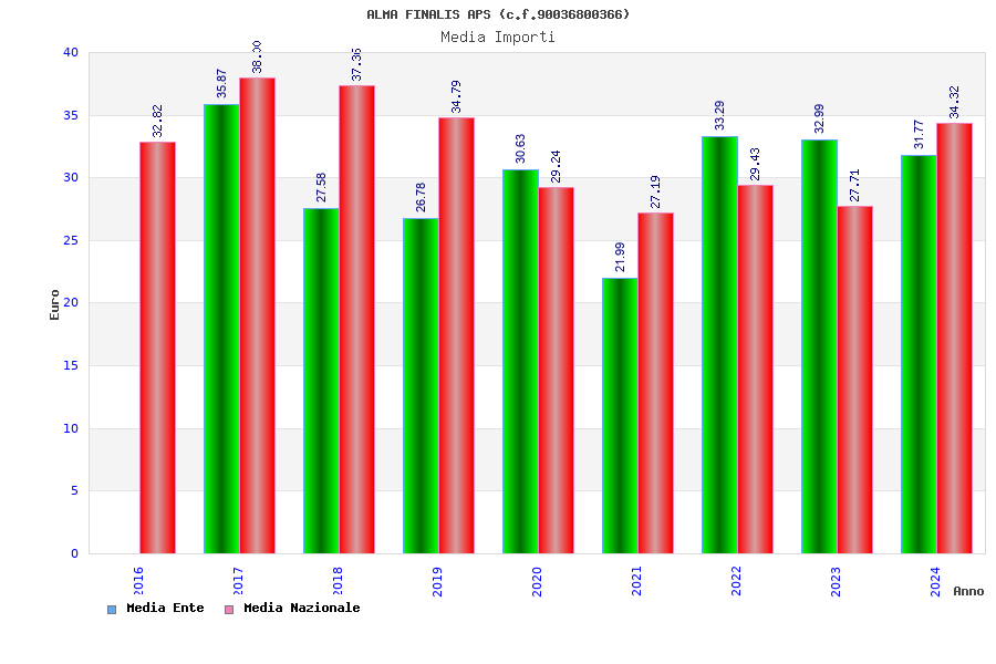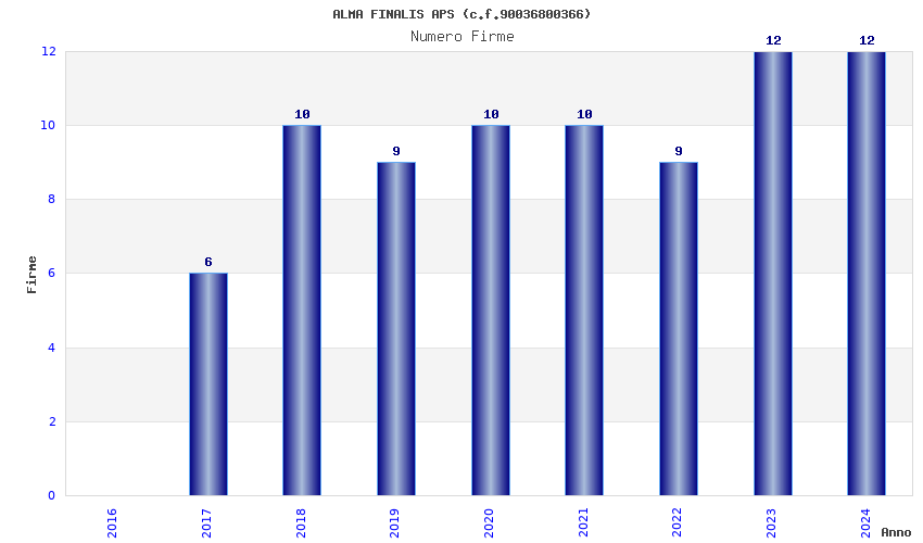 | Anno | Firme | Importi | Media | Naz. | Reg. | Prov. | Comu. |