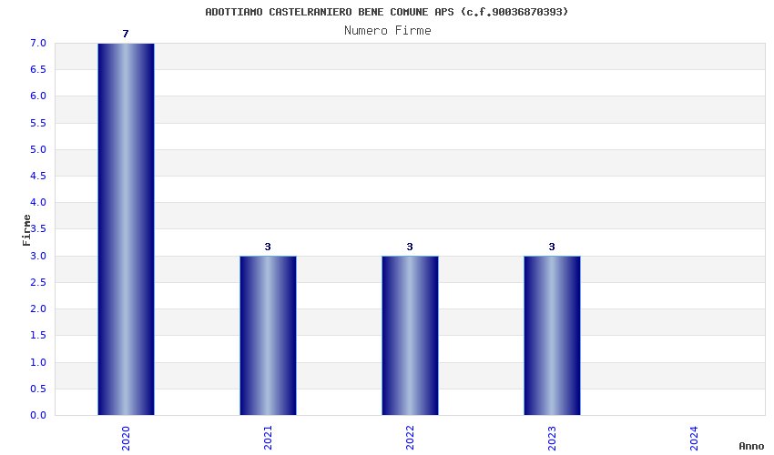 | Anno | Firme | Importi | Media | Naz. | Reg. | Prov. | Comu. |