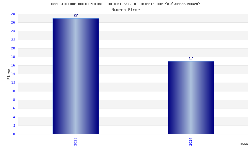 | Anno | Firme | Importi | Media | Naz. | Reg. | Prov. | Comu. |