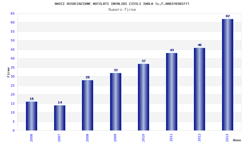 | Anno | Firme | Importi | Media | Naz. | Reg. | Prov. | Comu. |