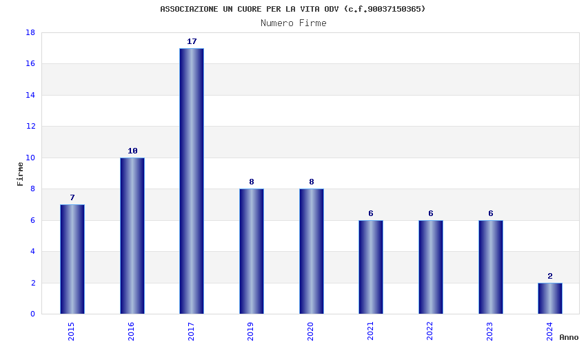 | Anno | Firme | Importi | Media | Naz. | Reg. | Prov. | Comu. |