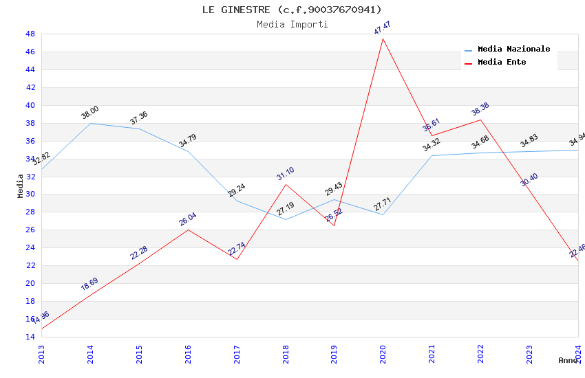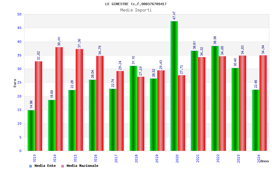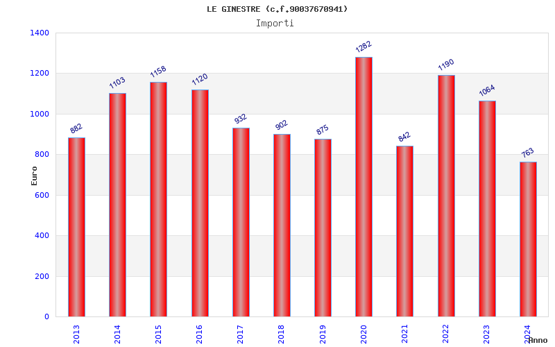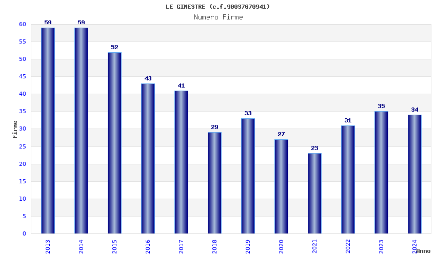 | Anno | Firme | Importi | Media | Naz. | Reg. | Prov. | Comu. |