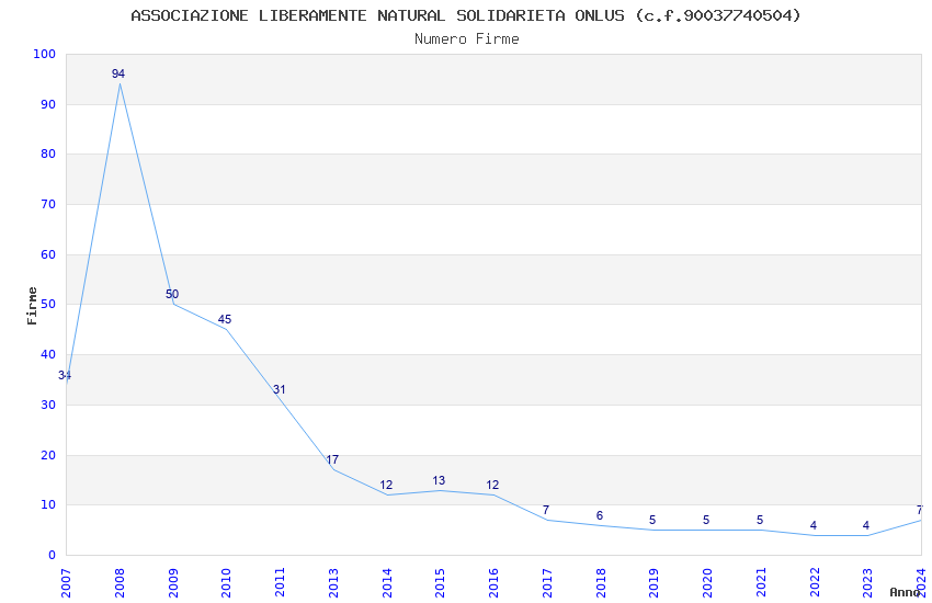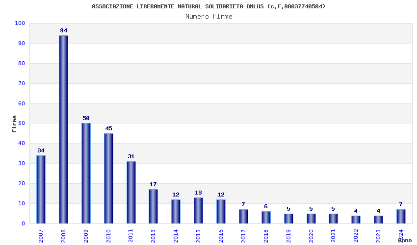 | Anno | Firme | Importi | Media | Naz. | Reg. | Prov. | Comu. |