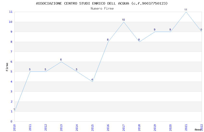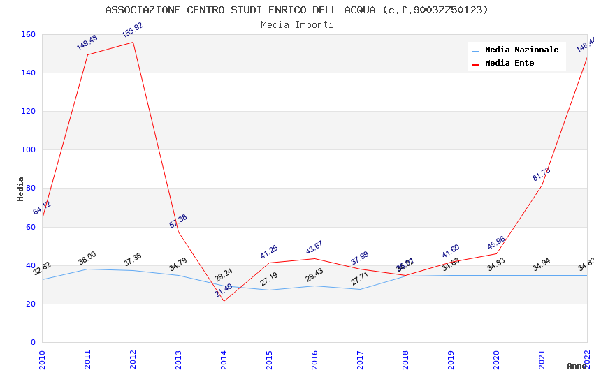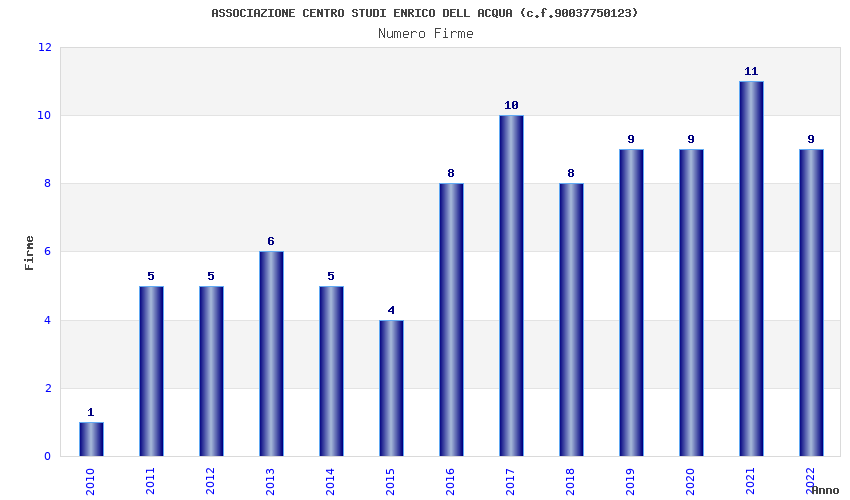 | Anno | Firme | Importi | Media | Naz. | Reg. | Prov. | Comu. |