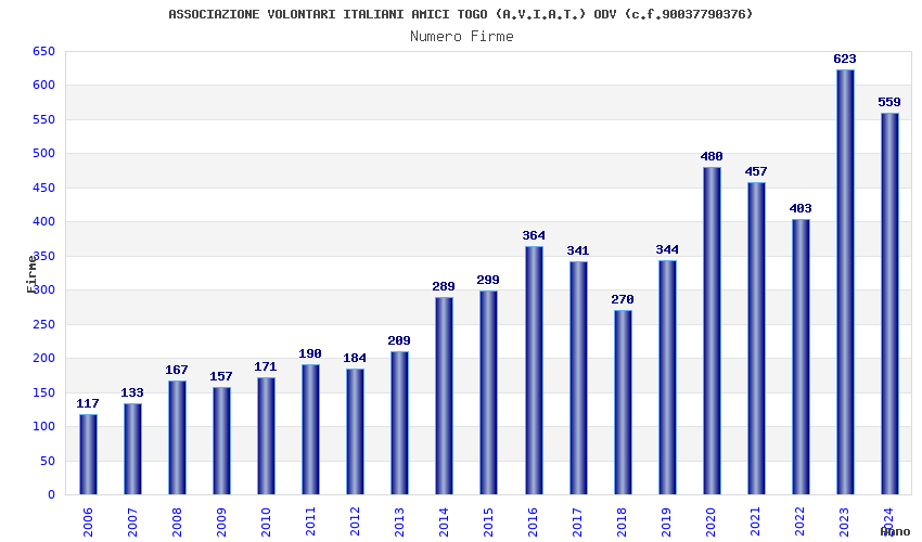 | Anno | Firme | Importi | Media | Naz. | Reg. | Prov. | Comu. |