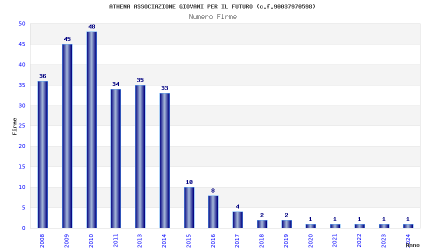 | Anno | Firme | Importi | Media | Naz. | Reg. | Prov. | Comu. |