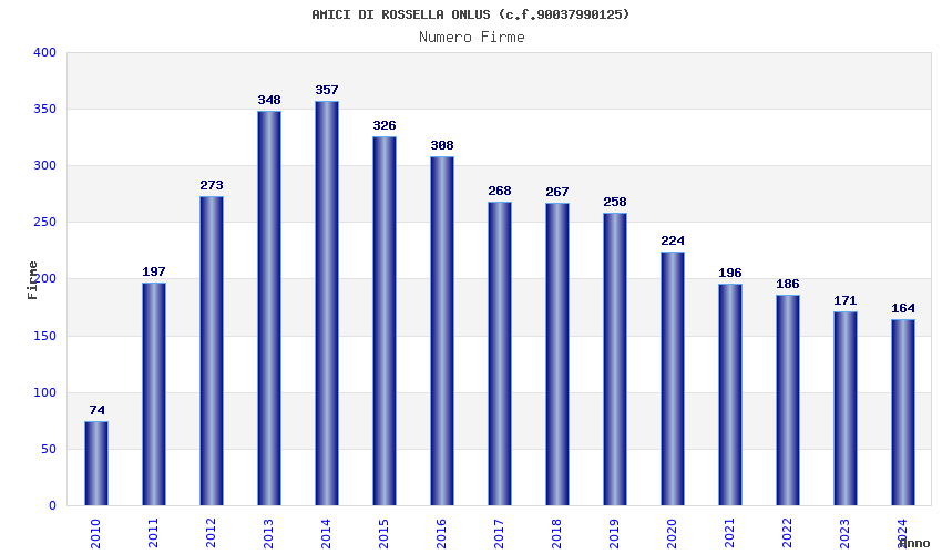 | Anno | Firme | Importi | Media | Naz. | Reg. | Prov. | Comu. |