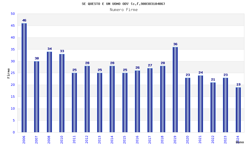 | Anno | Firme | Importi | Media | Naz. | Reg. | Prov. | Comu. |