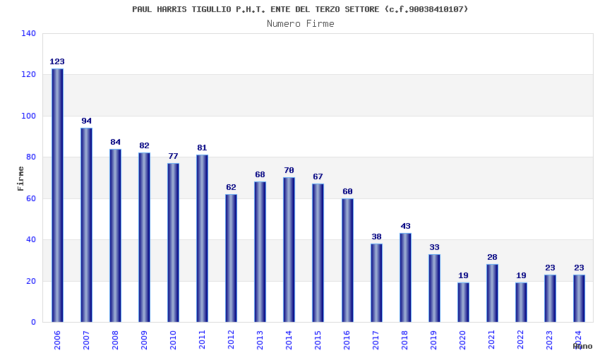 | Anno | Firme | Importi | Media | Naz. | Reg. | Prov. | Comu. |