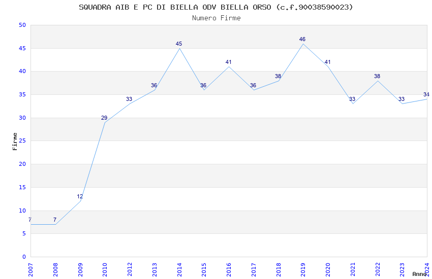 | 2019 | 46 | 1.105,92 | 24,04 | 33.883 | 2.790 | 125 | 62 |