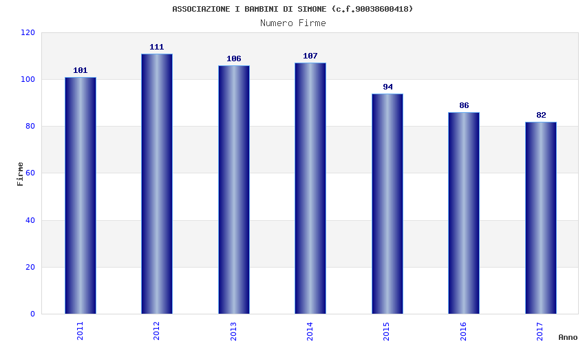 | Anno | Firme | Importi | Media | Naz. | Reg. | Prov. | Comu. |
