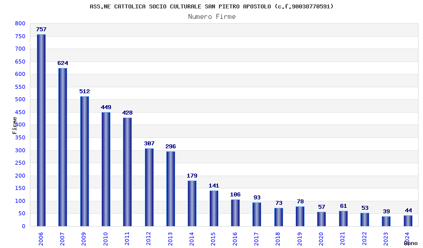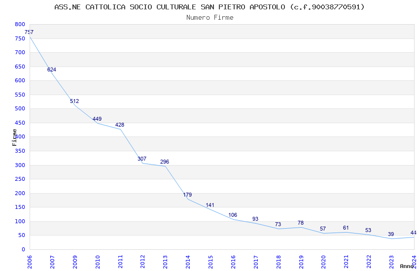 | 2024 | 44 | 1.727,16 | 39,25 | 26.763 | 2.643 | 153 | 5 |