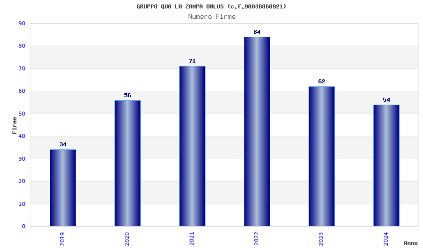 | Anno | Firme | Importi | Media | Naz. | Reg. | Prov. | Comu. |